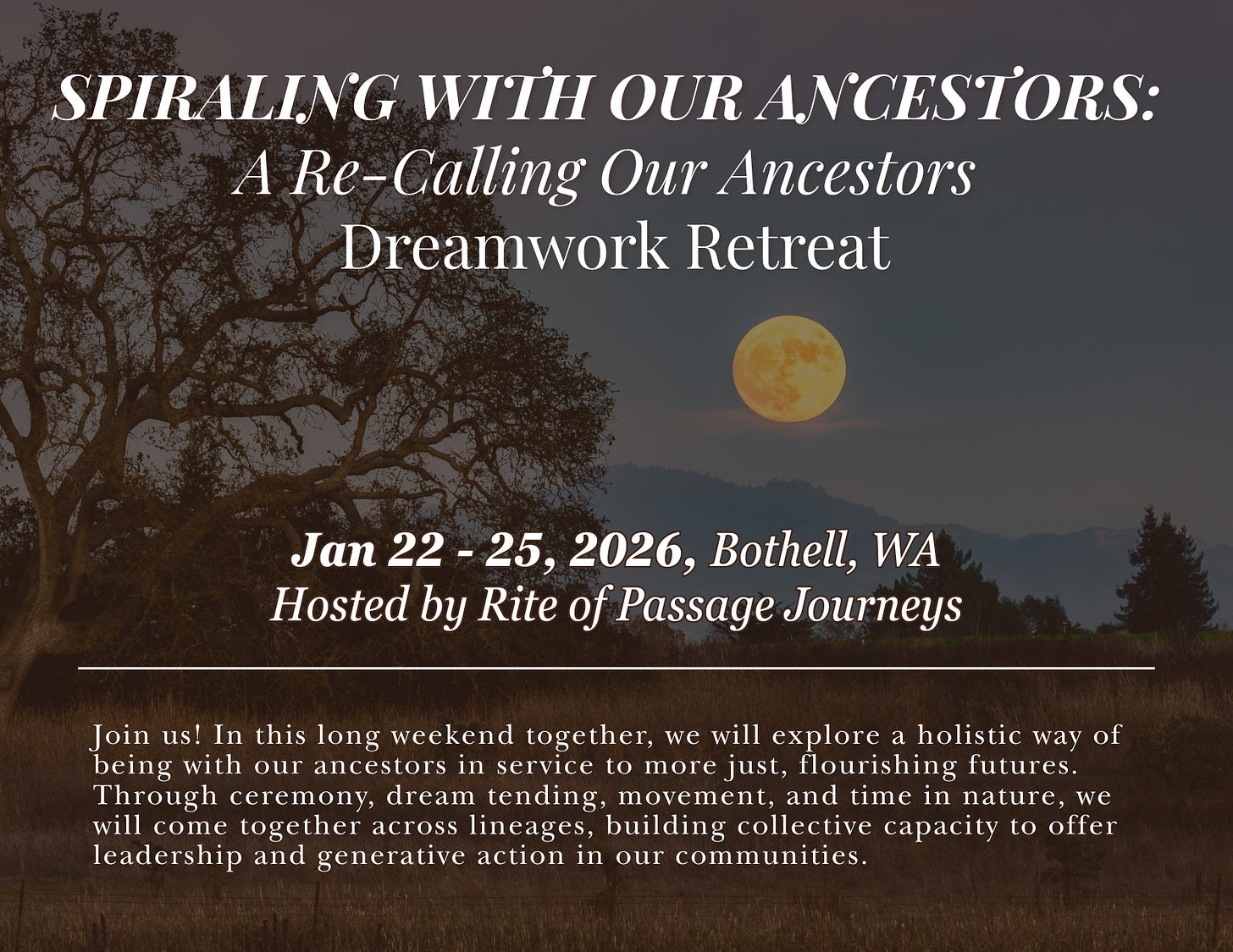 In the new year, please join us for an in-person community exploration and ritual inquiry in cross-cultural, cross-class, and cross-racial ancestral recovery, truth-telling, and collective repair. In this long weekend together, we will explore a holistic way of being with our ancestors and lineages, tending to the earth-cherishing traditions of our ancestors, the harm our ancestors endured, the harm our ancestors caused, and the ways our ancestors resisted and persisted along the way. Through story, song, ceremony, dreaming, and time on the land, we will reconnect with the folk traditions of our ancestors - stories of resistance, resilience, and relationship that predate colonial systems and can help us untangle the multiplicity of our identities.